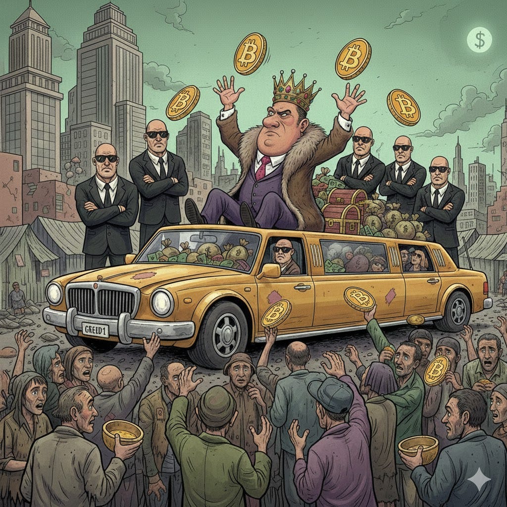 Buffett’s wealth is not in green papyrus. It’s in bits in a vast array of digital ledgers, all secured ultimately by the power of the US Department of Defense which backs up the power of the US-dominated global financial system, resting on the USD as (still) the primary reserve currency for the entire planet.
